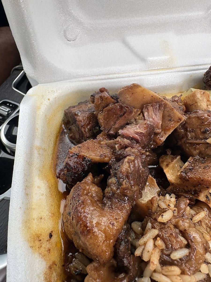 Food was amazing. My husband got the oxtails & I got the jerk chicken. It smelled amazing & both were very flavorful & tender. Corn bread was good as well. It was drive thru only. The food didn’t take long to come out either. We got there like 45 min before they closed (close at 6 on Sunday), but the food still tasted fresh & hot. Not like it had been sitting all day. I would definitely recommend going here.